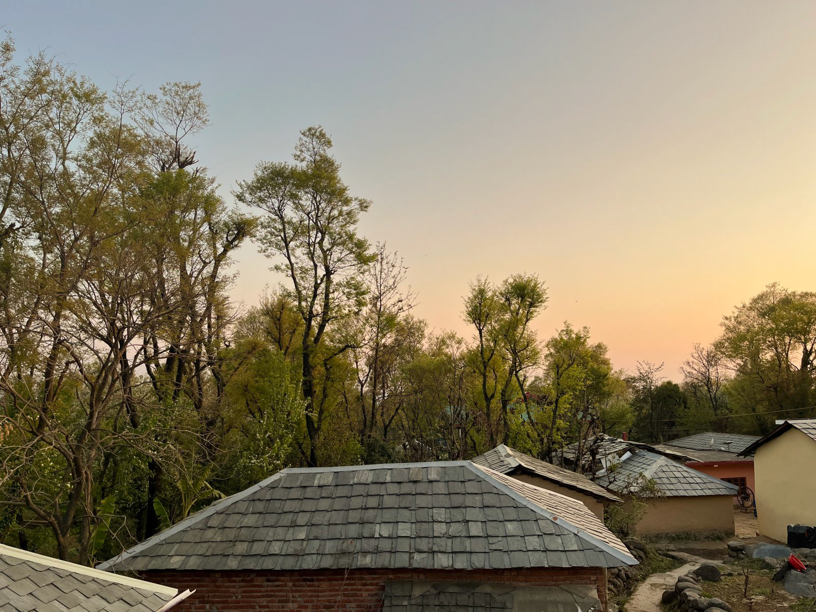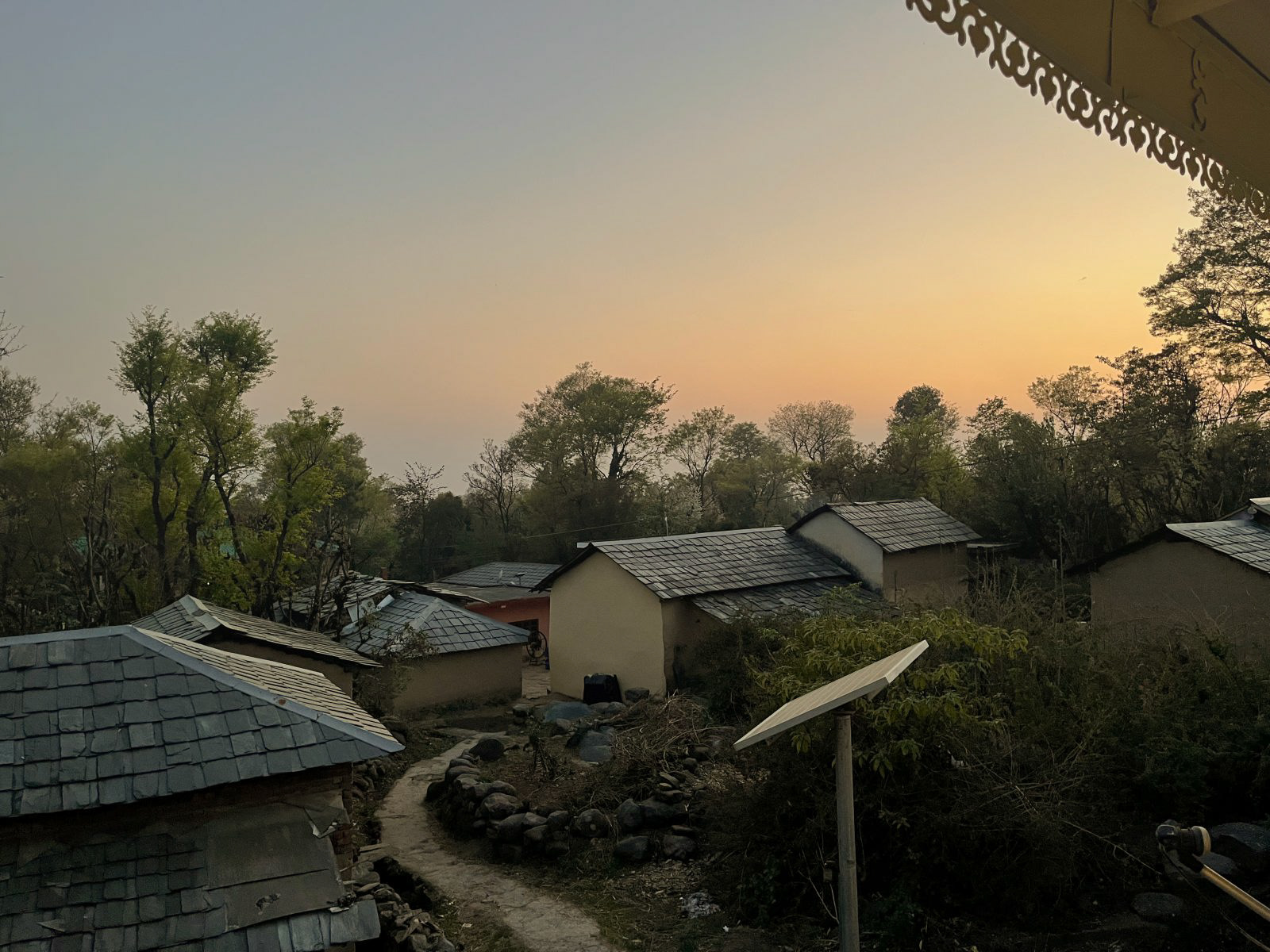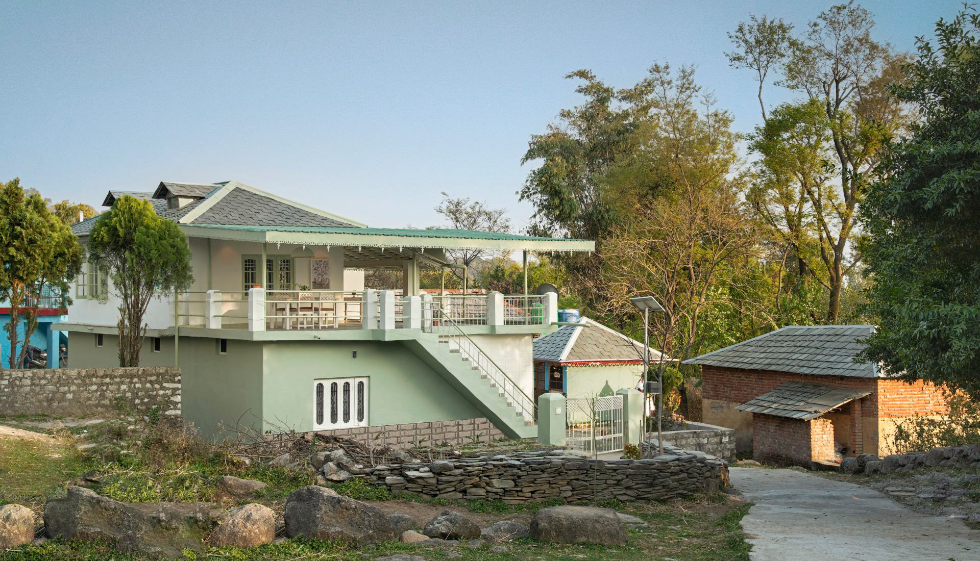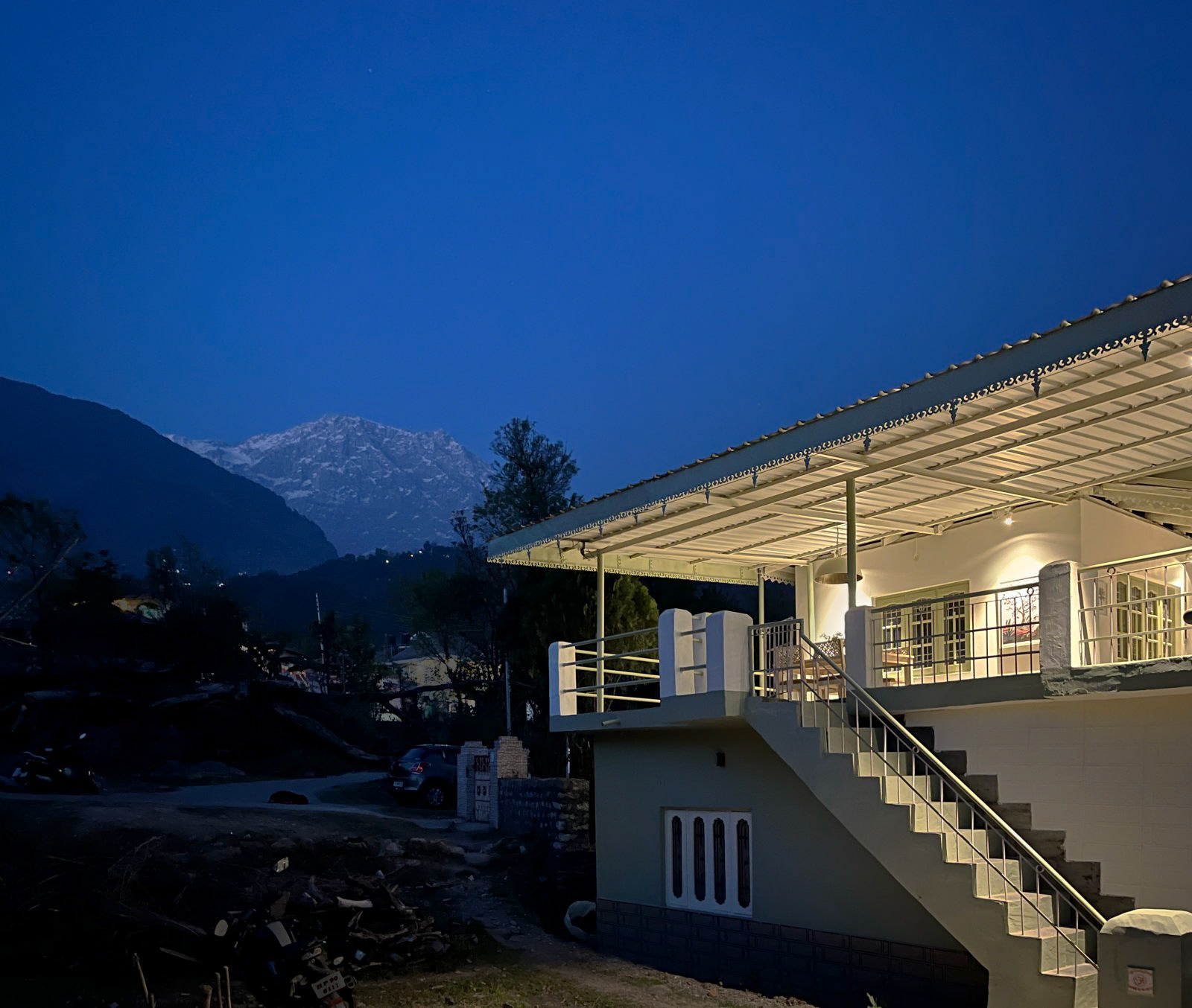 A complete private first floor of a cottage with separate entry, Dhauladhar range view on one side and Village view on the other. 2 Bedroom, 1 Living Room with a Low Floor Single Bed, 1 Washroom accessible from all the rooms, Fully Operational kitchen, Spacious Patio with a Dining Table and a workstation, Fibre net - upto 40 mbps speed, Parking is 30 metres away. Vehicle can come close to the gate. You can hire a cook on per day basis. Zomato and swiggy delivers.