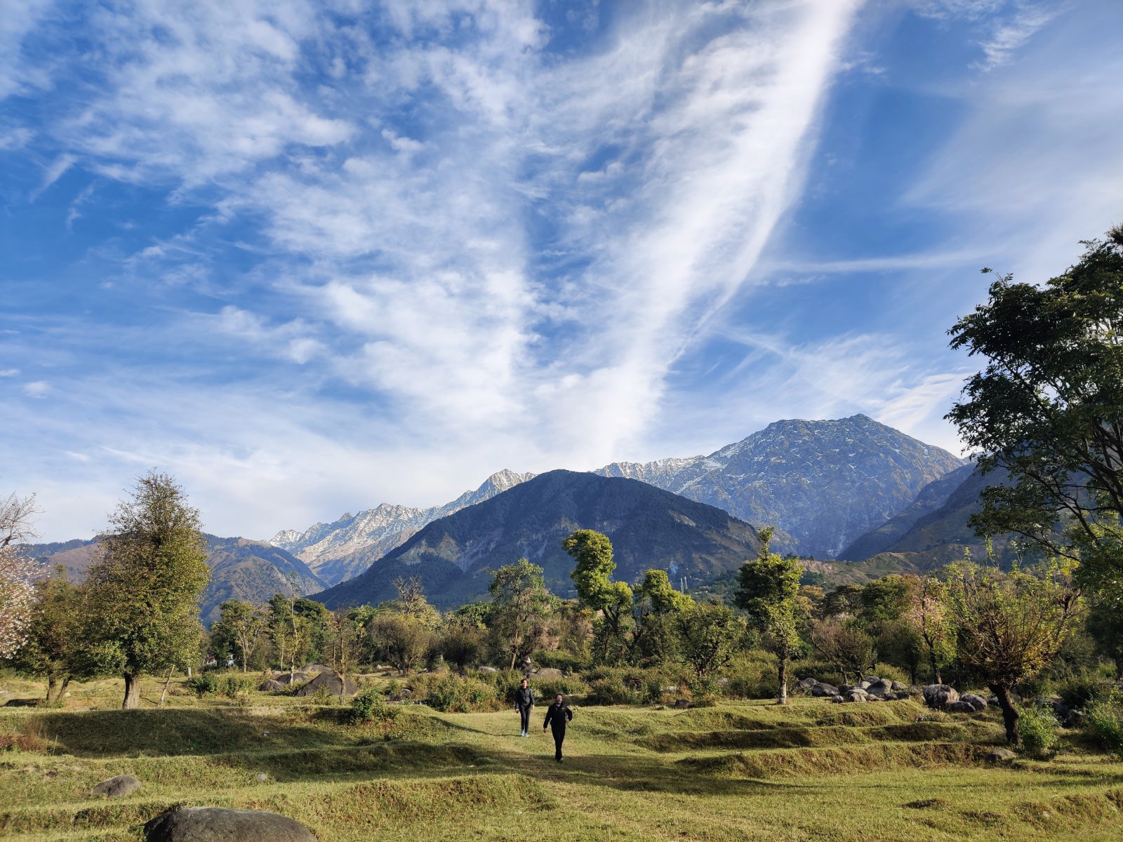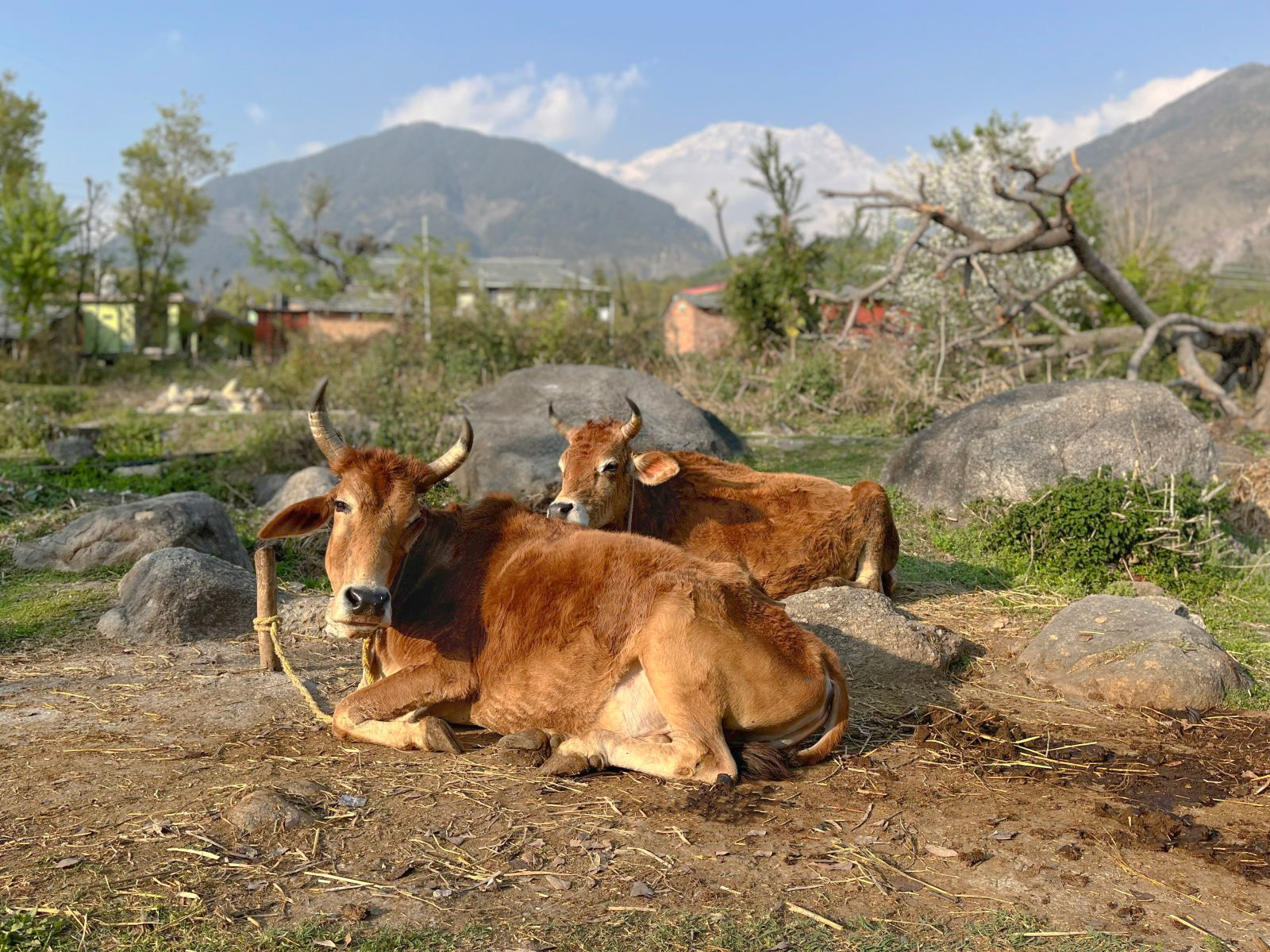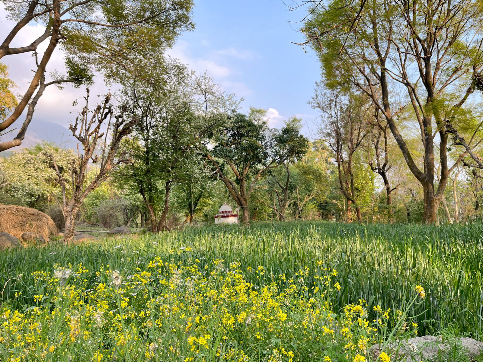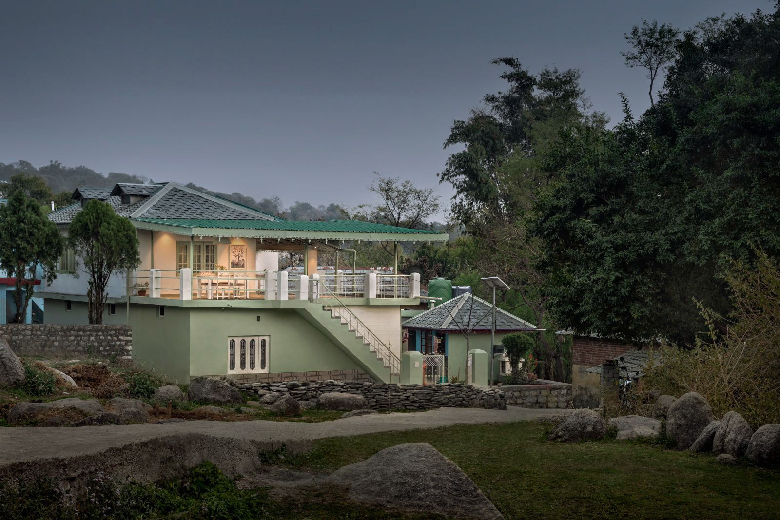 A complete private first floor of a cottage with separate entry, Dhauladhar range view on one side and Village view on the other. 2 Bedroom, 1 Living Room with a Low Floor Single Bed, 1 Washroom accessible from all the rooms, Fully Operational kitchen, Spacious Patio with a Dining Table and a workstation, Fibre net - upto 40 mbps speed, Parking is 30 metres away. Vehicle can come close to the gate. You can hire a cook on per day basis. Zomato and swiggy delivers.