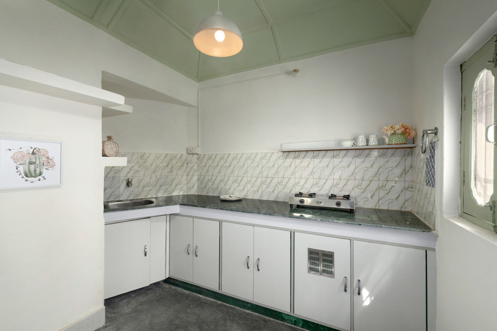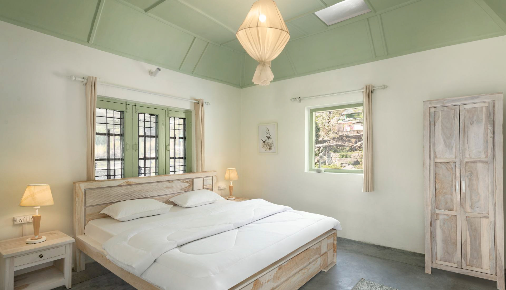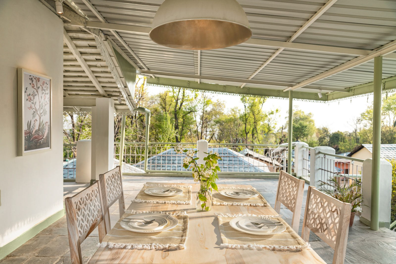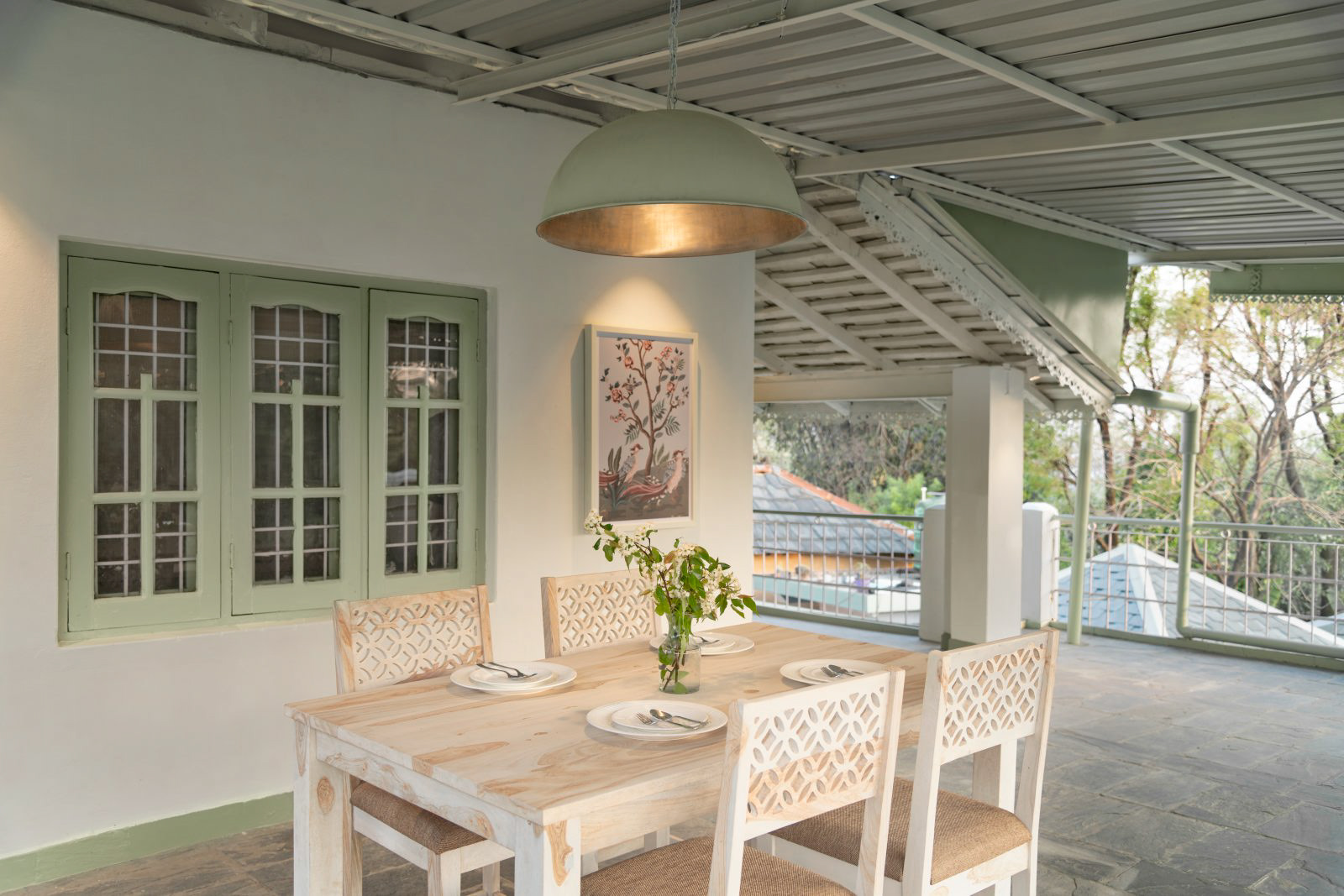 A complete private first floor of a cottage with separate entry, Dhauladhar range view on one side and Village view on the other. 2 Bedroom, 1 Living Room with a Low Floor Single Bed, 1 Washroom accessible from all the rooms, Fully Operational kitchen, Spacious Patio with a Dining Table and a workstation, Fibre net - upto 40 mbps speed, Parking is 30 metres away. Vehicle can come close to the gate. You can hire a cook on per day basis. Zomato and swiggy delivers.